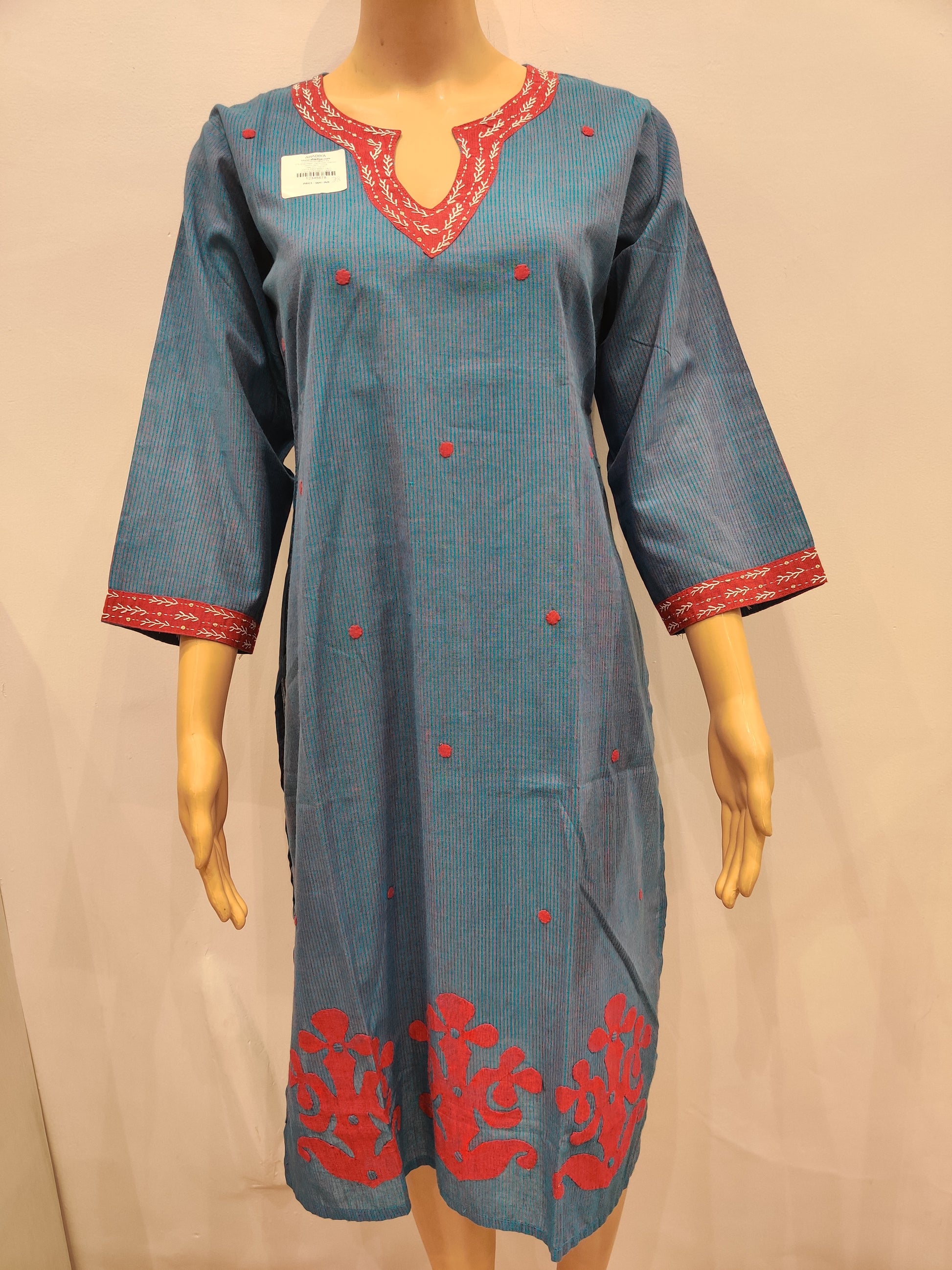 • Fabric: The kurta is made from a lightweight, breathable handloom appliqué work