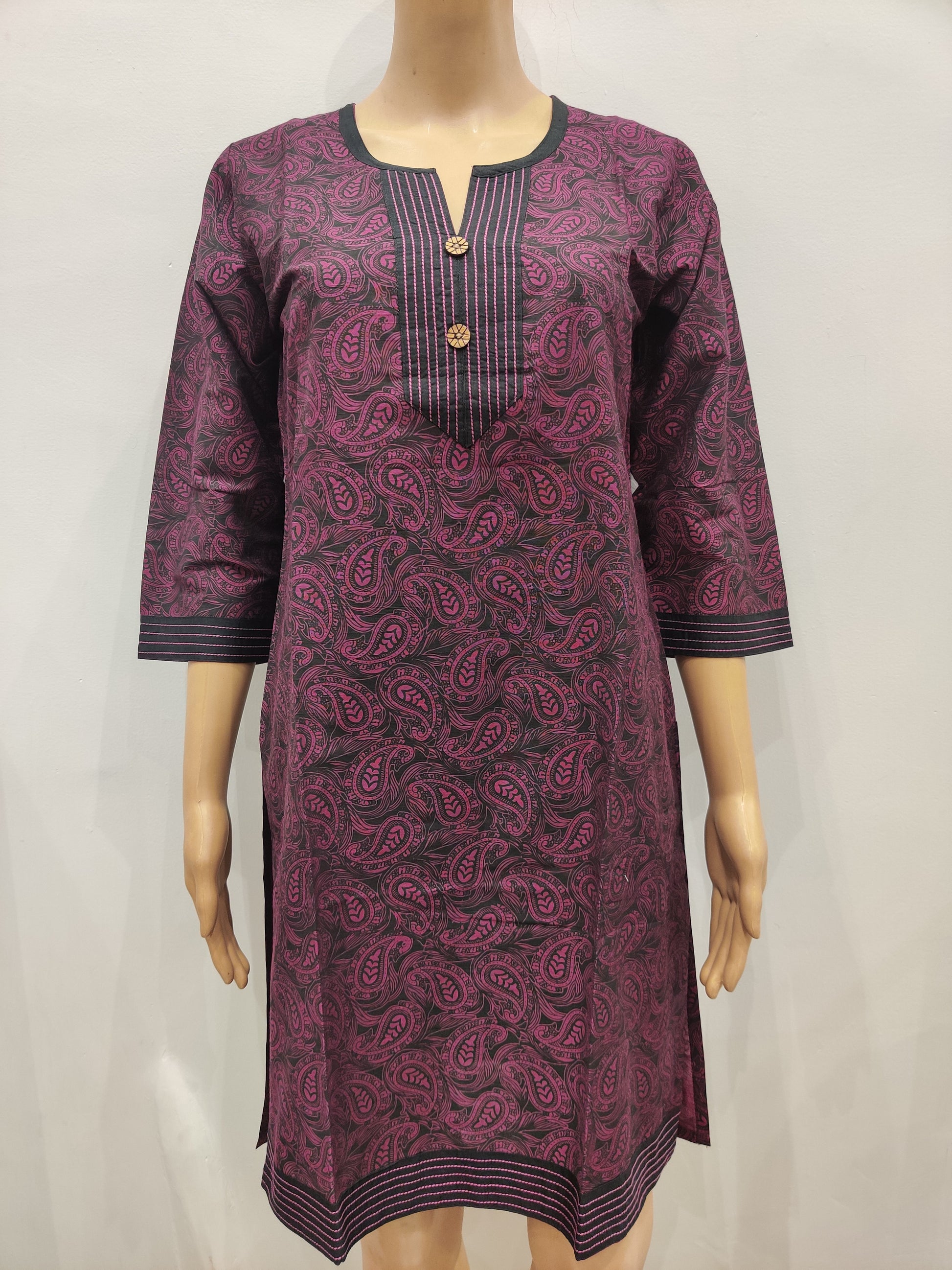 • Style: A kurta-style top with three-quarter sleeves and a straight cut