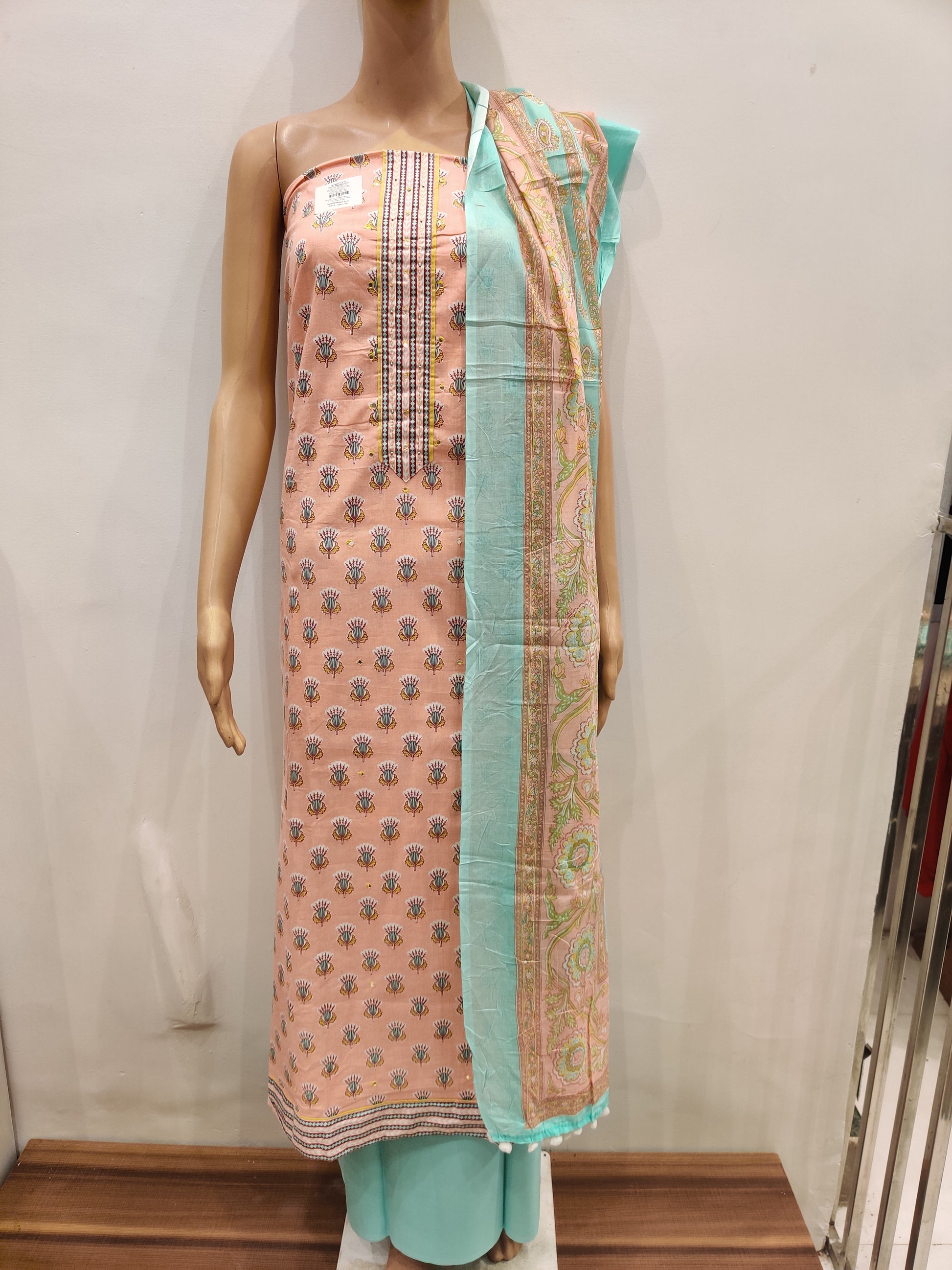 Discover the allure of our premium unstitched fabric, a masterpiece of textile artistry. This material is expertly crafted from high-quality threads, woven into a fabric that promises both exceptional durability and a gentle touch. The vibrant palette of colors brings to life the intricate patterns that adorn the fabric, creating a stunning visual display that is both captivating and elegant. The fabric’s rich texture and the mesmerizing interplay of colors and designs make it an ideal canvas for your bespoke creation, ensuring that any garment made from this material will be a true reflection of personal style and sophistication. Whether you’re crafting a traditional ensemble or a modern chic outfit, this fabric is the perfect starting point for a fashion statement that is uniquely yours.