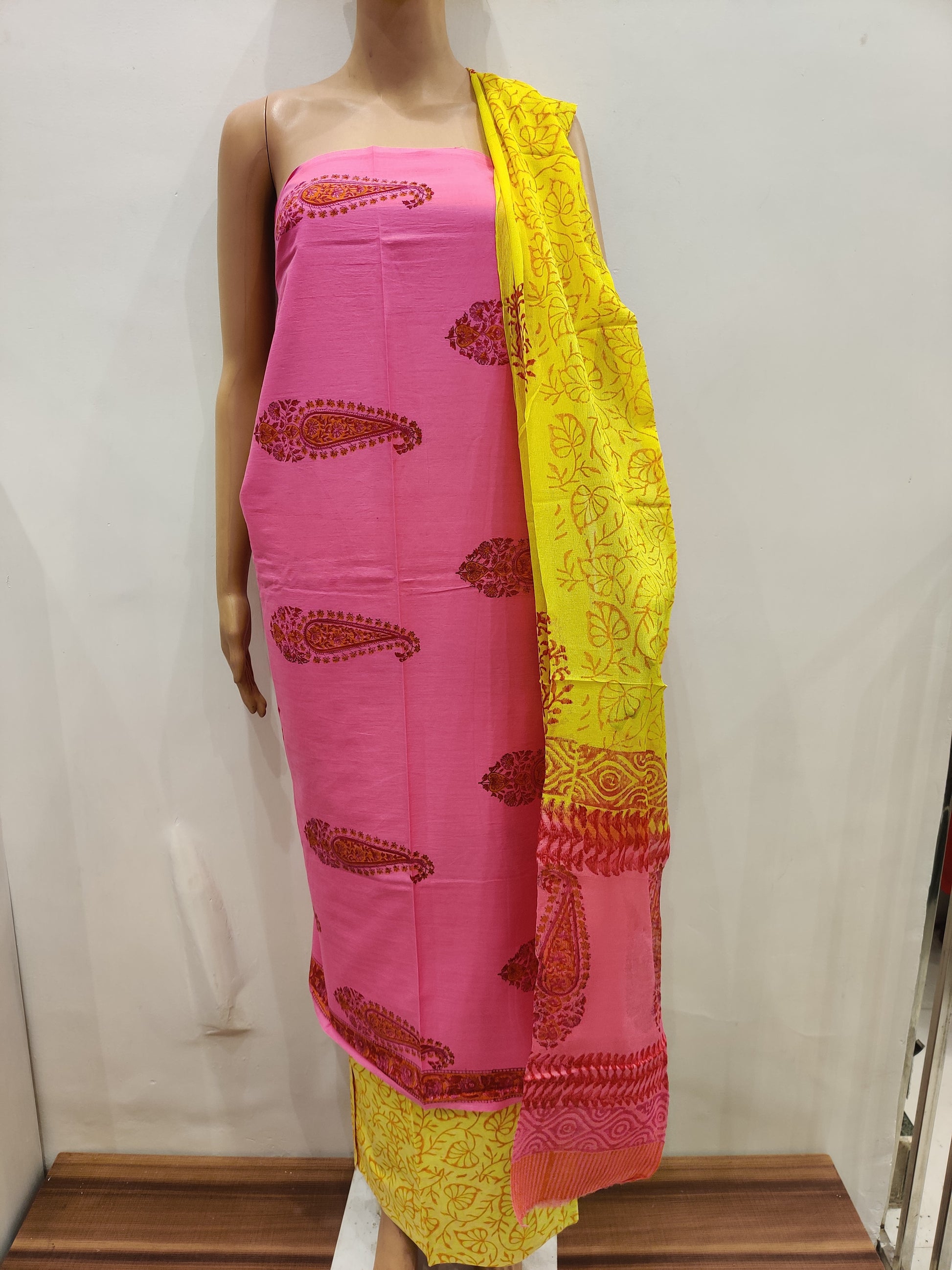 Discover the allure of bespoke elegance with our premium unstitched set, designed for the discerning fashion enthusiast. Crafted from the finest threads, the fabric is a testament to the art of textile creation, offering both durability and comfort. The set boasts a captivating pink palette, exuding warmth and vibrancy that’s sure to turn heads. Its luxurious fabric is adorned with exquisite patterns, promising a timeless style that celebrates intricate design and attention to detail. Perfect for any occasion, this set invites you to express your unique style with a personal touch.