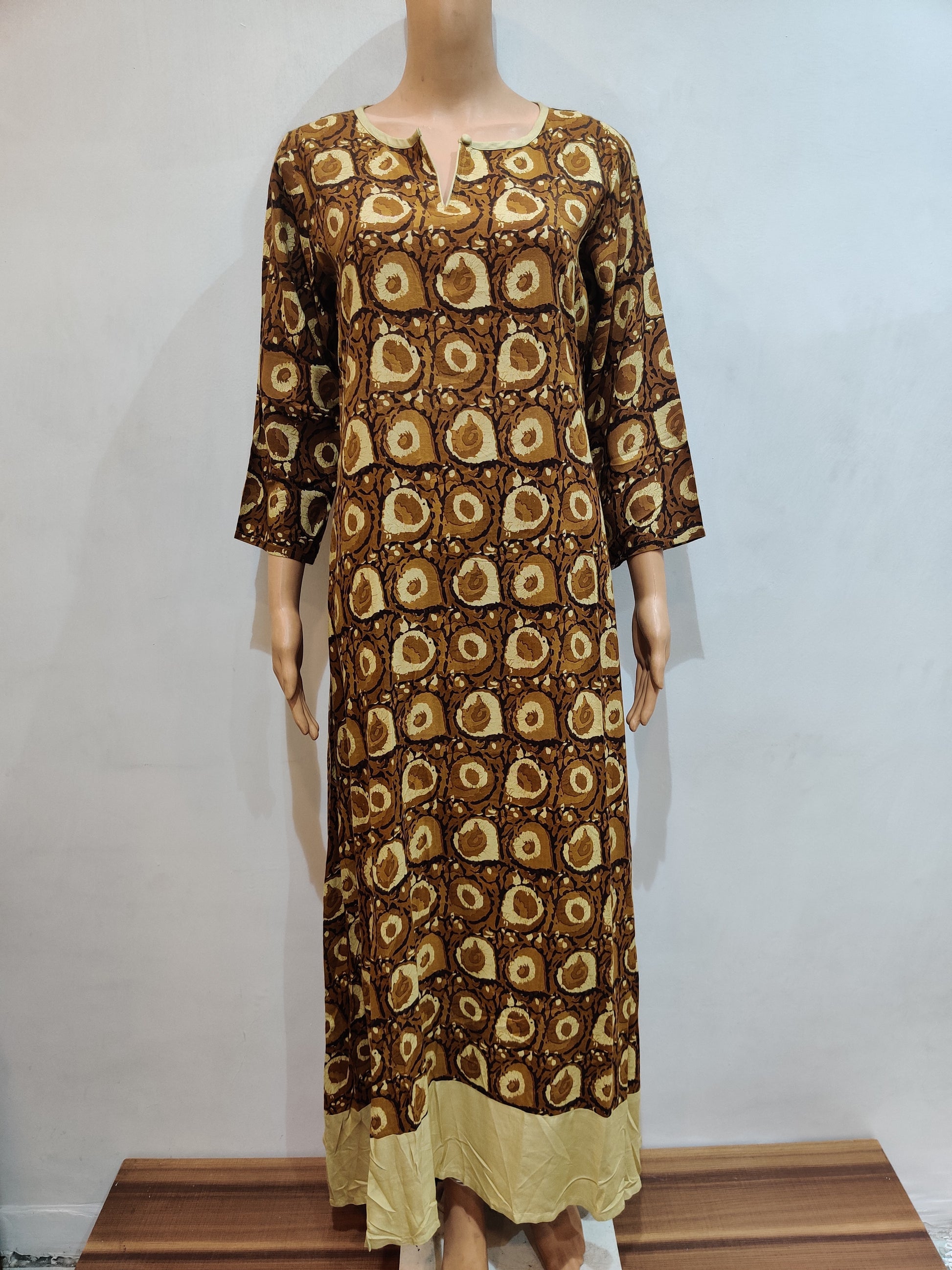 Step into the world of refined elegance with our meticulously crafted gown. The Slub Cotton is a testament to the art of textile creation, woven with precision to ensure a fabric that is both durable and luxuriously soft to the touch. This gown is presented in a palette of earthy tones, each shade chosen for its natural sophistication and ability to complement the wearer. The fabric itself is adorned with traditional motifs reimagined through a contemporary lens, offering a pattern that is both timeless and modern. Perfect for any occasion, this gown is not just a piece of clothing, but a work of art waiting to drape you in elegance.