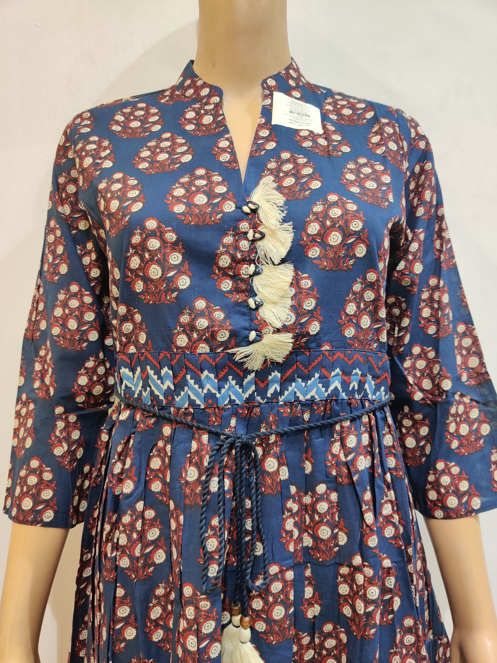 Step into the world of bespoke fashion with our navy blue dress, a garment that marries comfort with high-end style. The fabric is a testament to the art of weaving, meticulously crafted to ensure durability while providing a gentle caress against the skin. The dress features a rich navy hue, imbued with delicate designs that dance across the fabric, creating a visual symphony of elegance. The quality of the material and the precision of the pattern come together to form a piece that is as timeless as it is captivating, perfect for those who appreciate the finer things in life. Whether it’s a formal event or a casual outing, this dress promises to be a versatile addition to your wardrobe.