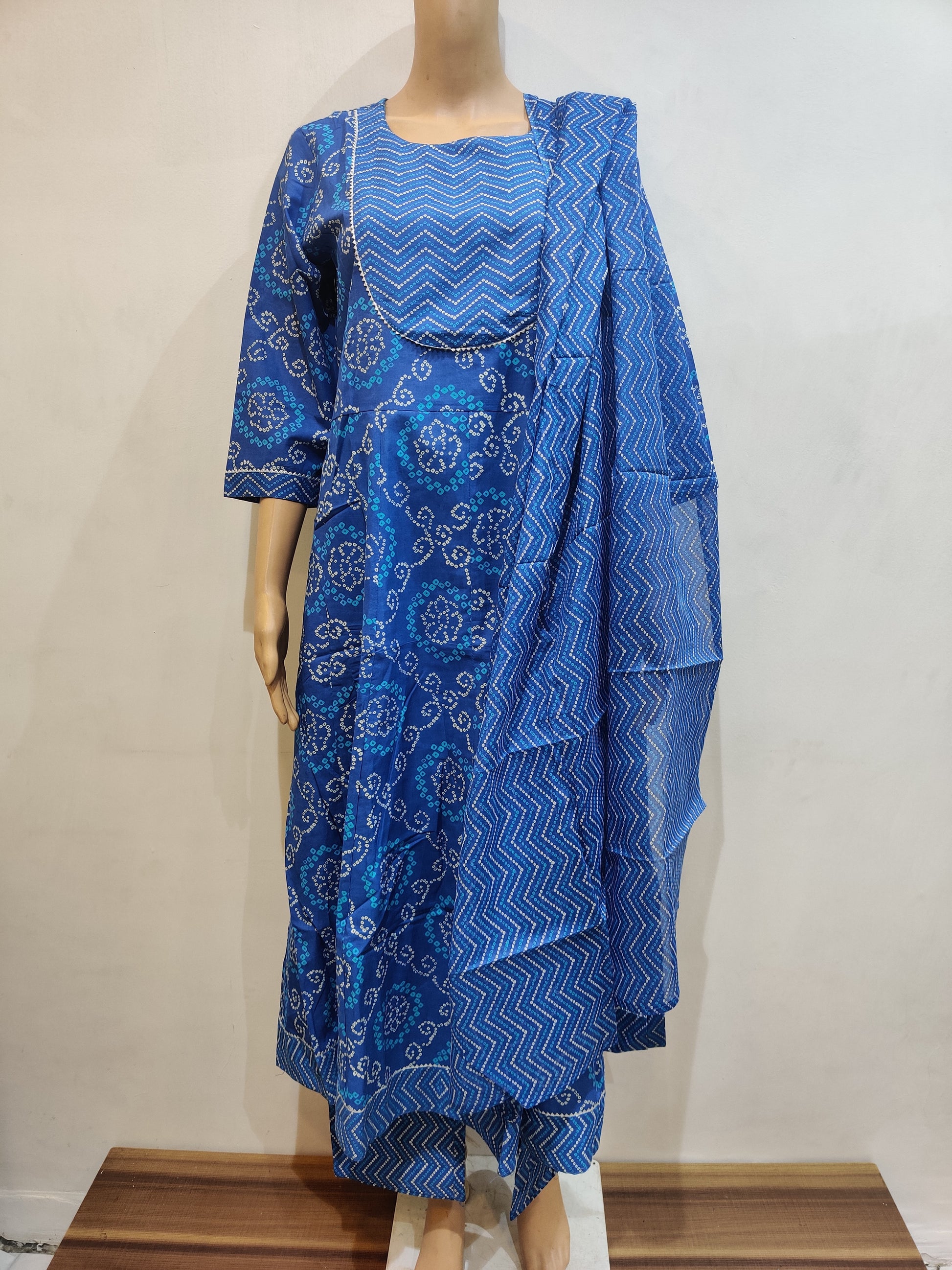 Immerse yourself in the allure of deep blue seas with this captivating kurta pant dupatta set. The enchanting blue hue mirrors the tranquility of ocean depths, infusing the ensemble with a serene and sophisticated vibe. Woven from a blend of fine fabrics, this set ensures not only comfort but also a graceful drape that accentuates your silhouette elegantly. The breathable material makes it perfect for any season, offering versatility and style throughout the year.