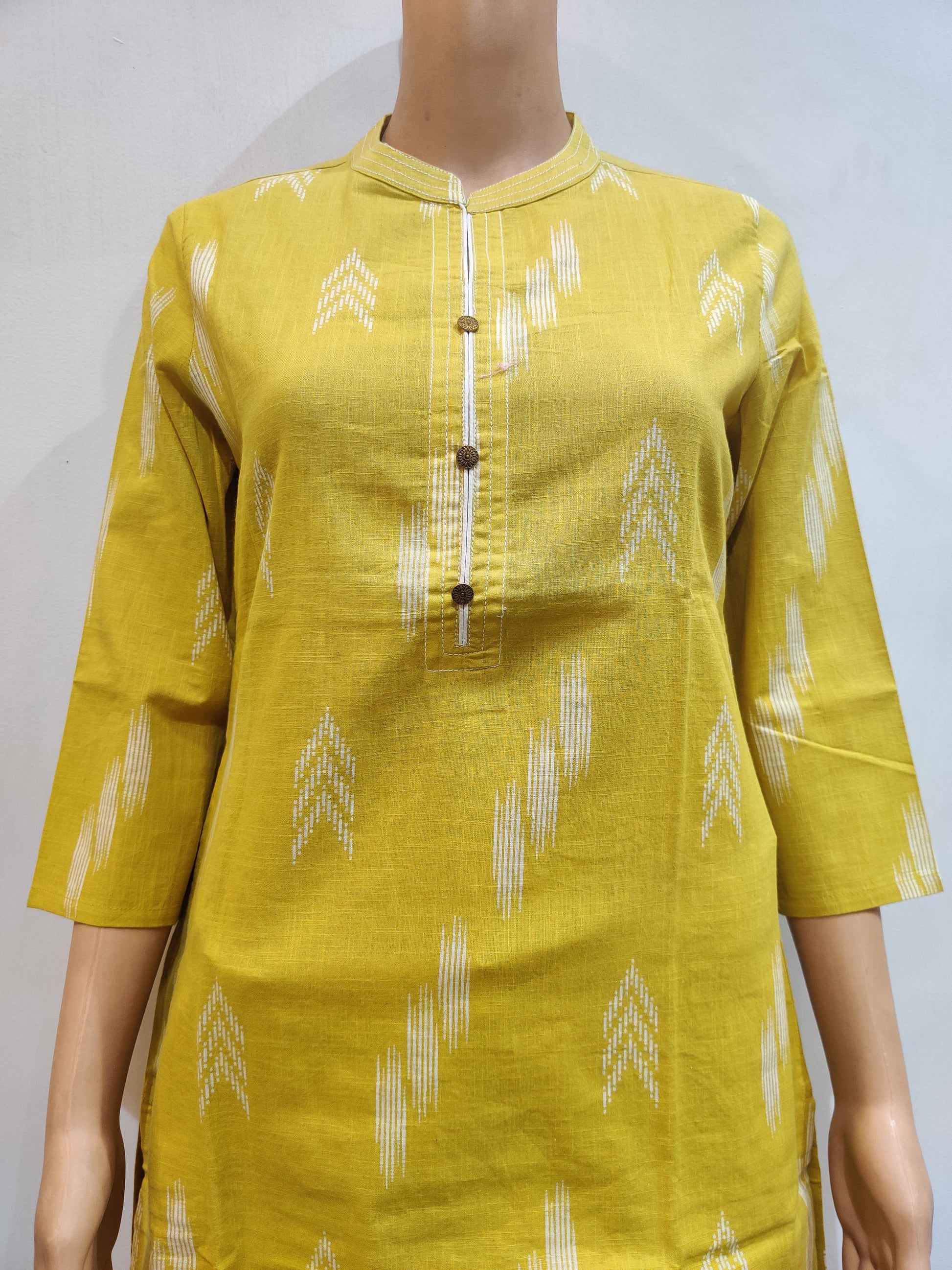 The mid-length kurta features three-quarter sleeves and button detailing at the front, adding a touch of sophistication. The straight-cut pants complement the overall design of the kurta, creating a cohesive and stylish ensemble.