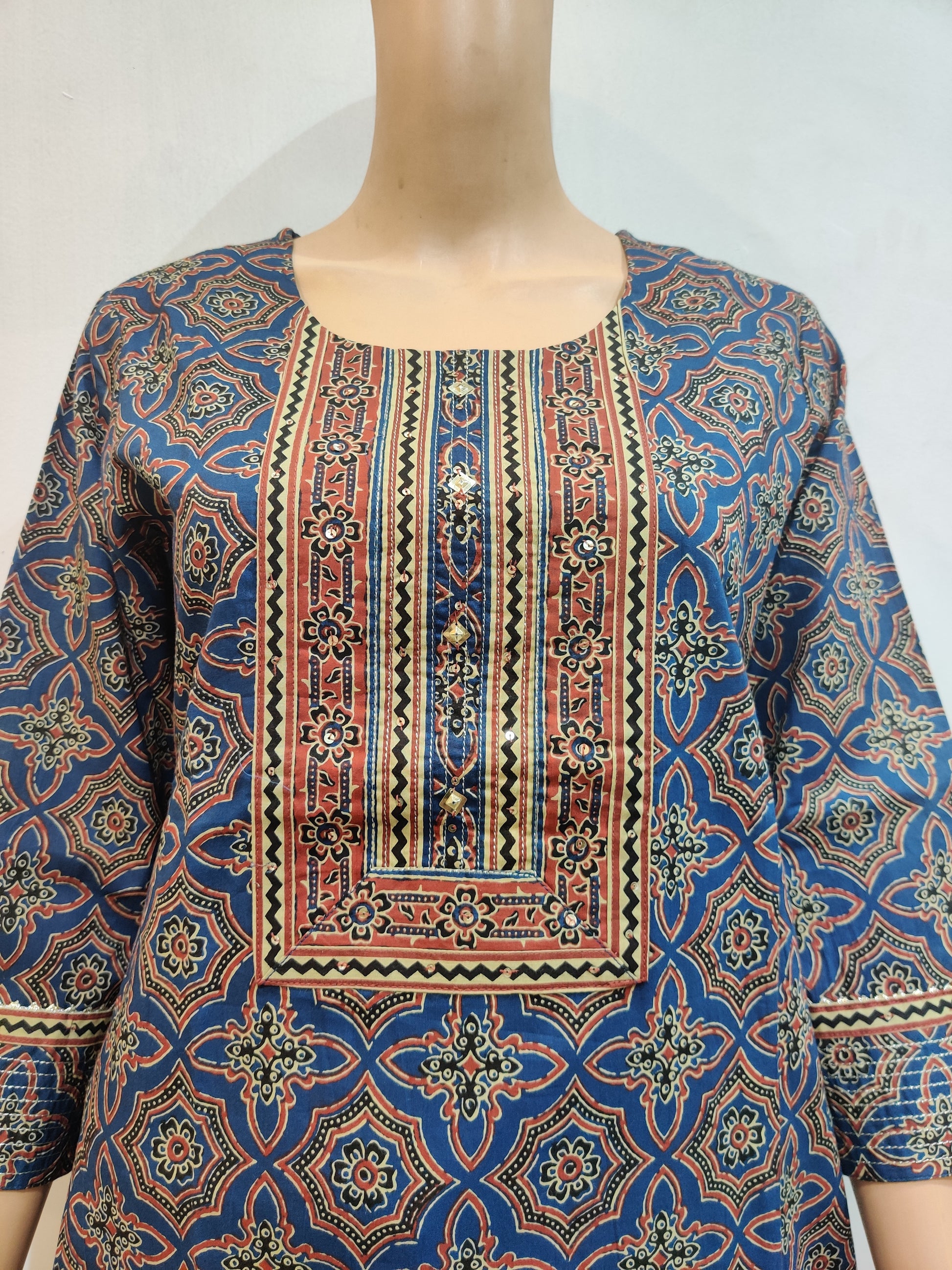 This elegant navy blue kurta pant set is a true embodiment of style and craftsmanship. The material used in crafting this ensemble is luxurious, carefully woven to ensure both comfort and durability. Its rich texture adds a layer of sophistication to the outfit, elevating its overall elegance. The graceful navy blue hue, coupled with intricate patterns, creates a perfect blend of traditional and contemporary styles, making it versatile for various occasions. The detailing, especially the detailed embroidery on the upper front, showcases skilled craftsmanship and attention to detail. Every stitch and pattern is rendered with precision, resulting in a piece that is not only stylish but also comfortable to wear. This kurta pant set is a timeless choice that effortlessly combines style and comfort, making it ideal for any event or gathering.