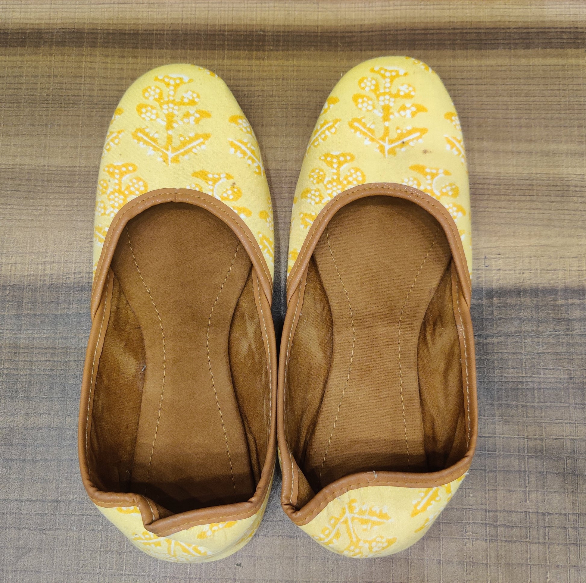 The yellow Jutti is a vibrant symbol of brightness and positivity, showcasing a vivid yellow hue. Crafted from high-quality fabric, it promises durability and a soft, comfortable texture ideal for prolonged wear. Its design features intricate white embroidery that beautifully blends traditional and contemporary aesthetics. This Jutti effortlessly combines sophistication with comfort, making it a stylish and versatile choice to complement traditional Indian attire.