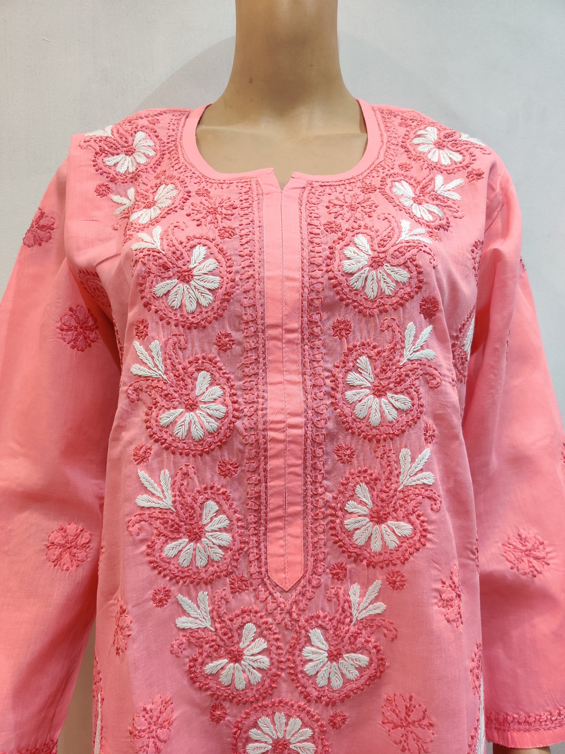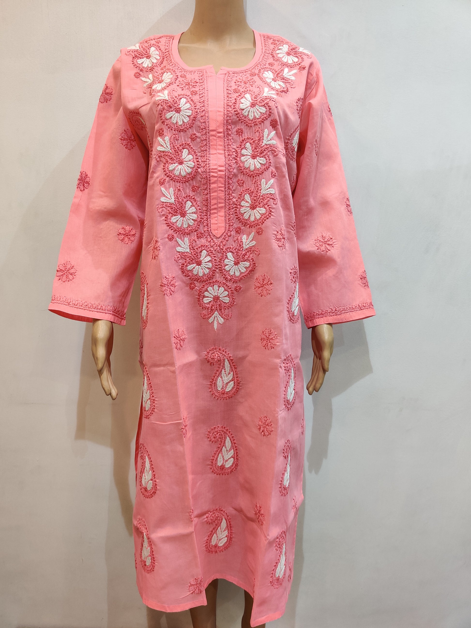 Experience elegance and tranquility in our pastel pink kurti, crafted from premium, breathable cotton fabric for lasting comfort. Its soft touch and effortless movement make it a joy to wear. Adorned with delicate white floral embroidery around the neckline, this kurti exudes sophistication and feminine charm. Perfect for any occasion, it's a delightful blend of style and attention to detail, ensuring you look and feel your best wherever you go.