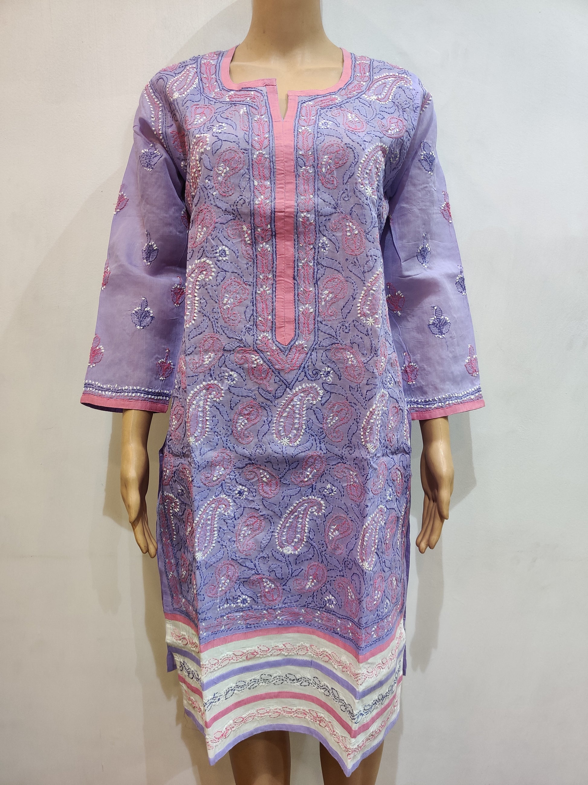Indulge in the tranquil charm of our exquisite purple kurti, designed to captivate with its refreshing hue and timeless elegance. Crafted from premium quality fabric, this kurti offers not just style but also comfort, ensuring a breathable and gentle feel against your skin throughout the day. The intricate white floral embroidery that adorns the kurti adds a touch of sophistication and tradition, creating a harmonious blend of modernity and heritage. Whether it's a casual day out or a special occasion, this aqua blue kurti is a versatile and chic choice that effortlessly elevates your style quotient. It's a must-have addition to your wardrobe for those who appreciate luxury and impeccable craftsmanship.
