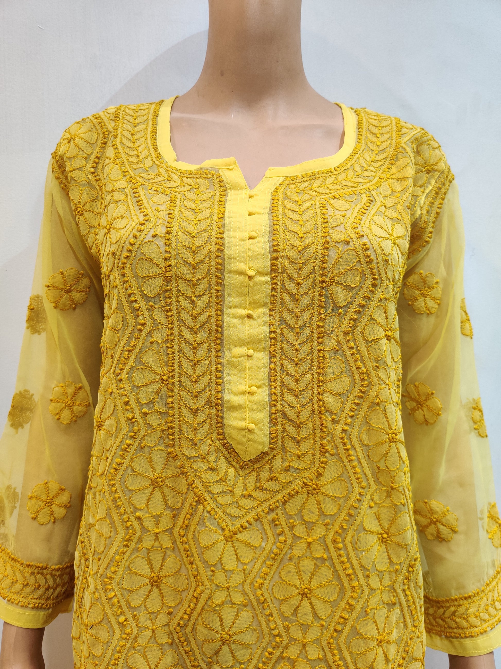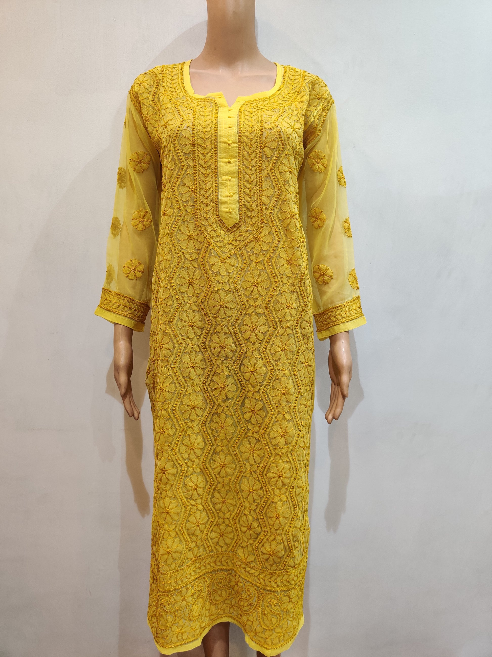 With full length sleeves, the kurti achieves a balanced look that merges traditional elements with contemporary fashion sensibilities.