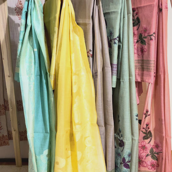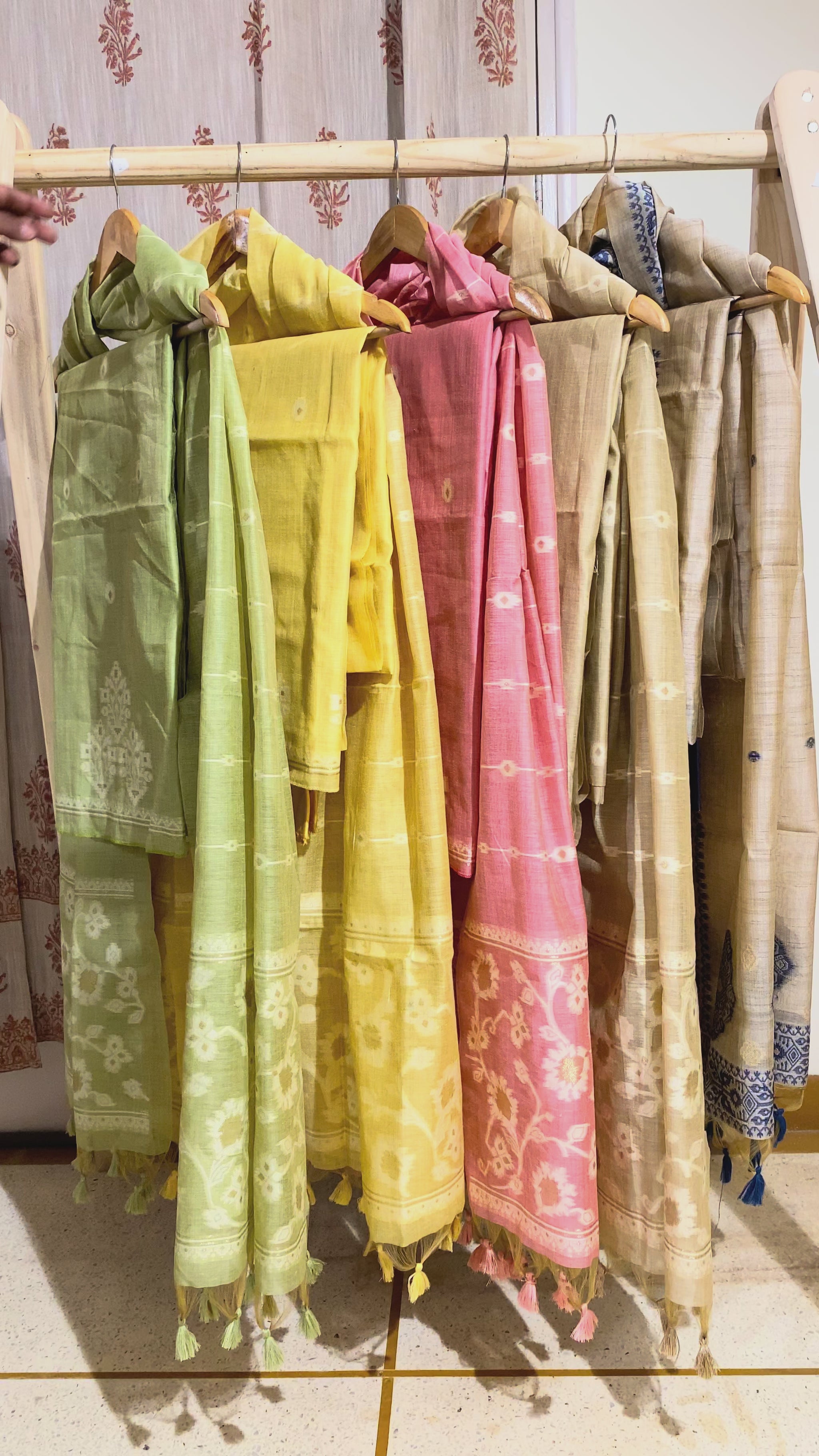 Crafted from high-quality Chanderi linen, this unstitched suit offers both comfort and style. Perfect for any occasion, its lightweight and breathable fabric provides a luxurious look and feel. Upgrade your wardrobe with this must-have piece, available in a price range of 4500 to 5500.